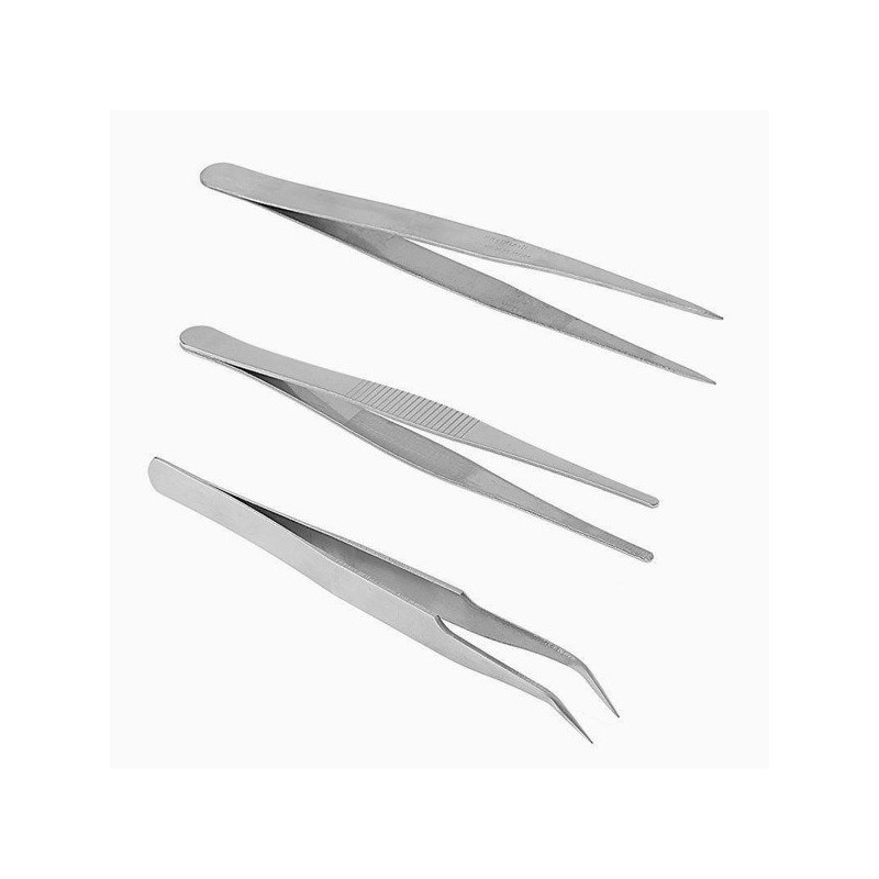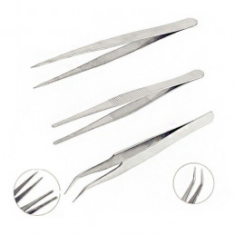 Set of 6 high-quality metal tweezers.