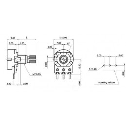 1 szt. Potencjometr Liniowy 10K L-15mm