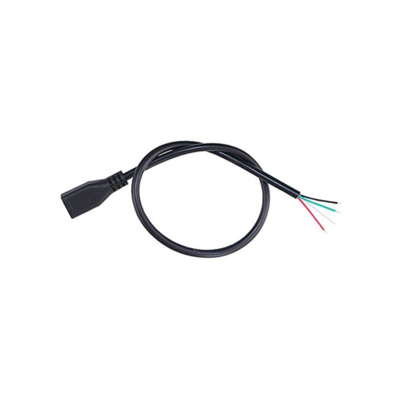 Przewód  jest zakończony z jednej strony gniazdem micro USB a z drugiej przewodami przygotowanymi do lutowania.
